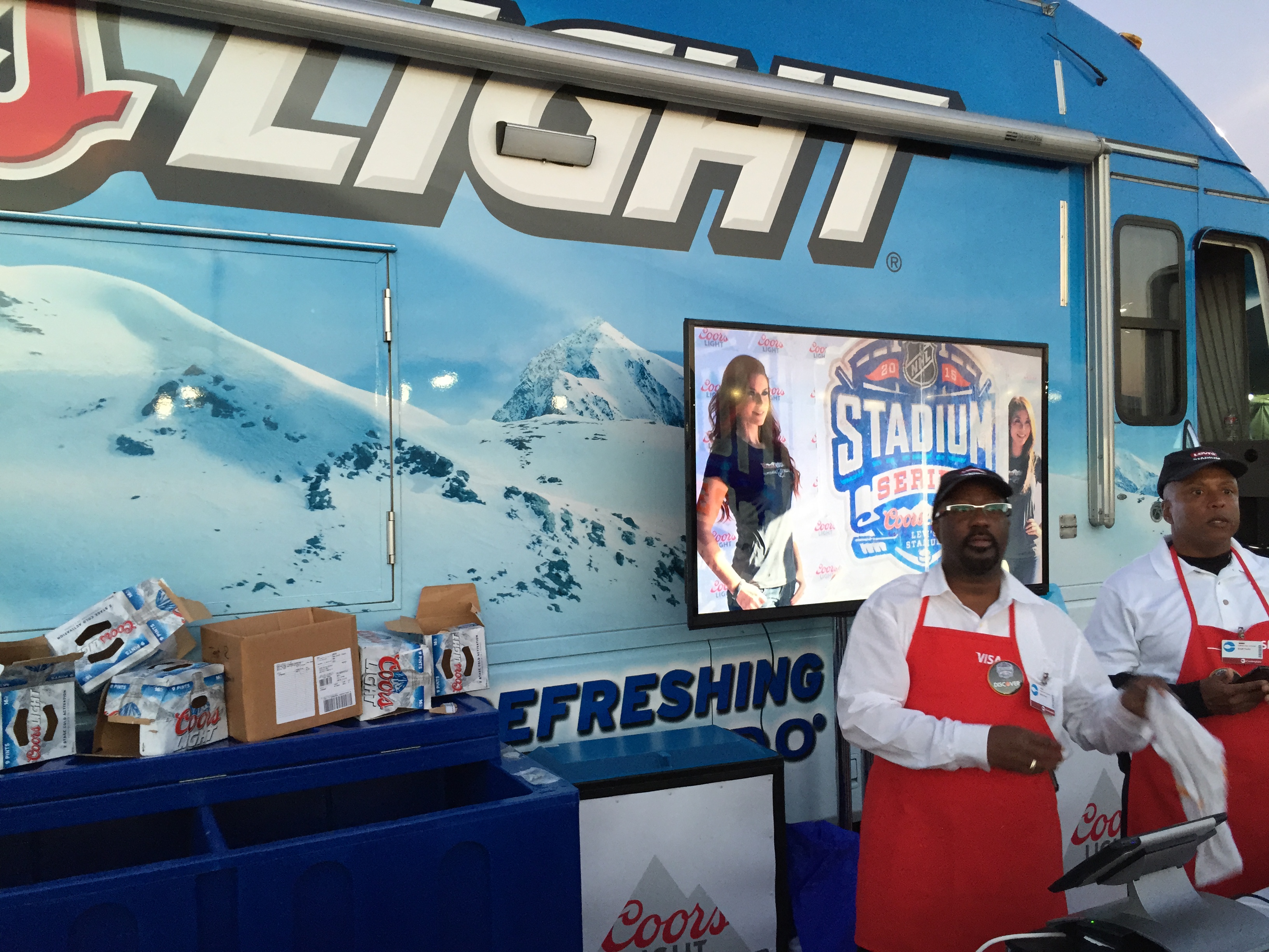 1. Temporary Prohibition: At 6pm, about 75 minutes before the opening puck drop, some of the beer vendors ran out of beer. Look at all those sad empty boxes in the picture above. My brother and I were second in line at the time these workers announced they were all out of the only product they had for sale at their stand. They pointed out another beer stand but said that stand already borrowed from them earlier, so they were probably low or out too. In fact, these guys were so unsure of whether or not any more beer was coming, they started handing money back to customers. That’s gotta be a worst case scenario for a stadium and a greedy sports league, right? You give money back to your customers due to inept employees or logistics, and you block people from getting liquored up, which stops them from making drunk purchasing decisions (more beer, lots of food, spontaneous merchandise transactions). Who’s running this league anyway? Roger Goodell?