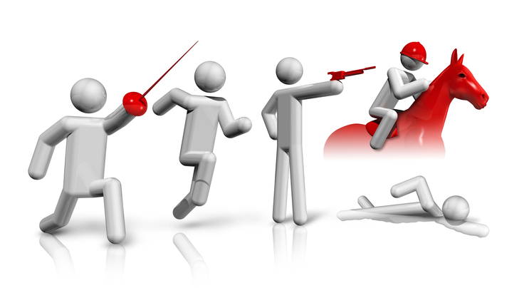 “Cheywa attended police college.” = Modern Pentathlon: because at police college you’re probably schooled in shooting, riding a horse, running and maybe sword fighting, and those are four of the events in the Pentathlon.