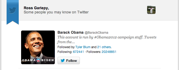 Children of America, pay attention. If you want to know why software engineers and computer people are making all the money these days, look no further than the crazy algorithms that the Twitter engineers have developed to find people in the Twitter universe who I might know: